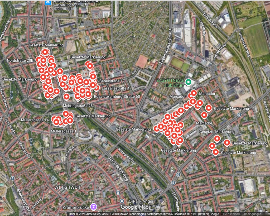 Um möglichst viele Menschen zu erreichen, haben wir Die Umfrage online und analog beworben. Unser Fachschaftrat hat uns bei der Online-Bewerbung intensiv unterstützt. Um die Menschen analog zu erreichen haben wir uns für Briefkastenwürfe entschieden, die wir in der Nähe der 3 Vor-Ort-Standorte verteilt haben.
